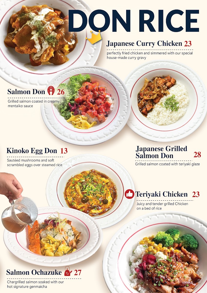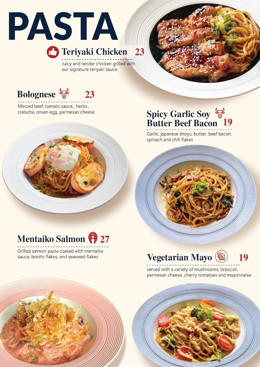 - Options including Japanese Curry, Veggie Spaghetti, Spicy Garlic Soy Beef Bacon Pasta, Pita Pita Chicken, Chicken Salad, and Pumpkin Soup